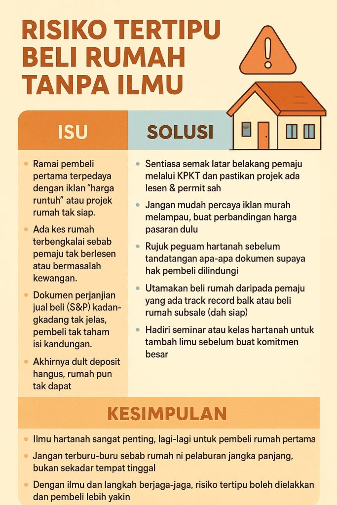 • Dengan ilmu dan langkah berjaga-jaga, risiko tertipu boleh dielakkan dan pembeli lebih yakin.